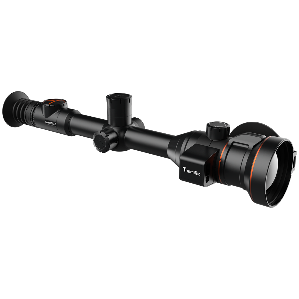 The ARES 660 LRF is an advanced thermal imaging sight designed for medium and long-range observation and targeting. It features an uncooled VOx thermal sensor with 640 × 512 px (12 µm pixel), enabling a detailed thermal image. It has a lens of 20/60 mm (F/1.0) with dual field of view, allowing you to adjust the angle depending on the situation: a wide field for detection and a telephoto lens for identification/long distance.