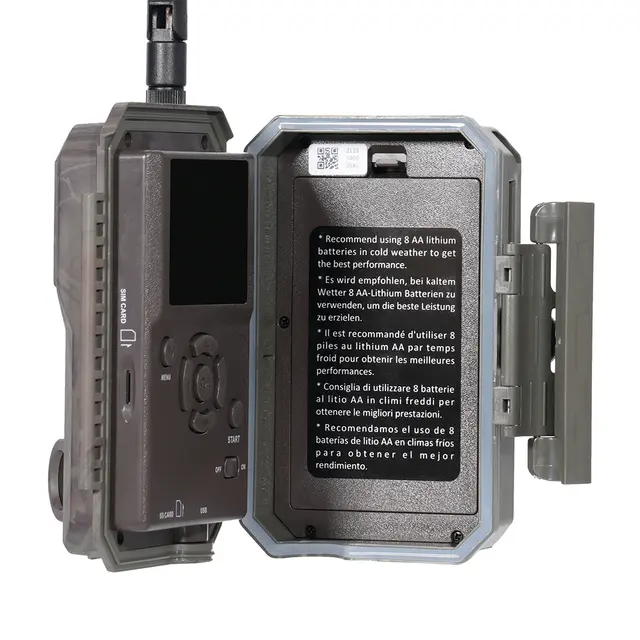 Utiliza 8 pilhas AAA para funcionar, ou pode utilizar o nosso painel solar de última geração com bateria incorporada para não ter de se preocupar com a manutenção da câmara.