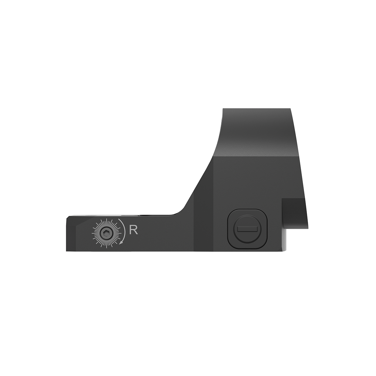 Perfil do corpo: extremamente discreto, com apenas 7 mm (aprox. 0,3″) altura, o que facilita a montagem em pistolas sem obstruir a linha de mira.